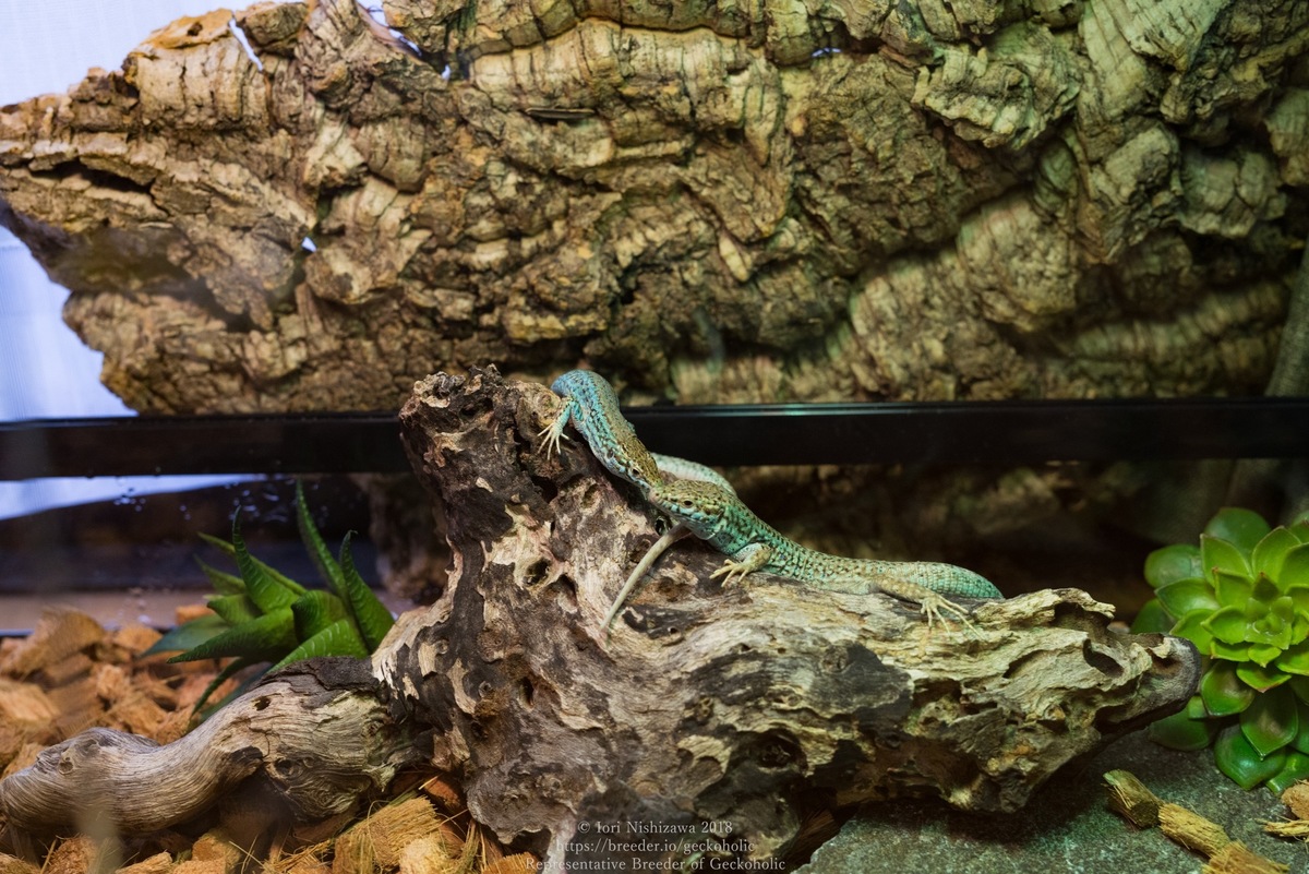 初日、二日目は殆ど床材に潜っていたメスも随分とバスキングスポットでまったりするようになっていました。