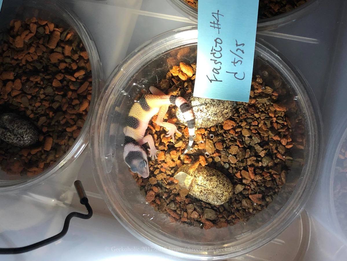 ファスキオラータスはヒョウモントカゲモドキ(レオパードゲッコー)の亜種の一つですが、Geckoboaは以下の理由で亜種名であるfasciolatusではなくfascioというニックネームで呼んでいる様です。