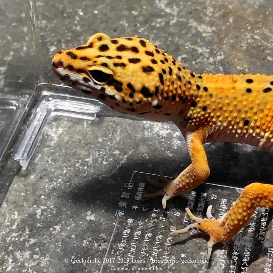 雄親のBlood & Clown Gの祖先がRAPTOR由来の為、small poss het RAPTOR(トレンパーアルビノとエクリプスが隠れヘテロの可能性がある)としています。