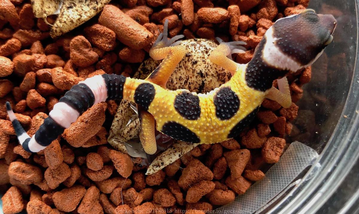 雌親はピグメントの大きく柄を崩す感じのW&Yなのですが、今の所この雌親からは(Blood & Clown G以外の雄親からも)そういった表現の個体は産まれていません。しかし非常に細かい柄でとても乱れた様な個体は複数産まれておりそれがW&Yなのかと思っていたのですが、柄が少なくでもW&Yっぽい色味の個体も産まれて「これはW&Yと断定するのは困難である」と判断しました。