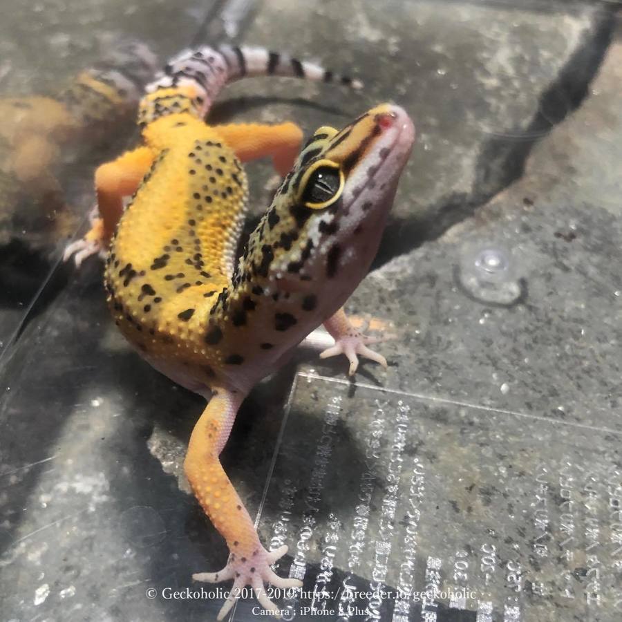 雄親のBlood & Clown Gの祖先がRAPTOR由来の為、small poss het RAPTOR(トレンパーアルビノとエクリプスが隠れヘテロの可能性がある)としています。