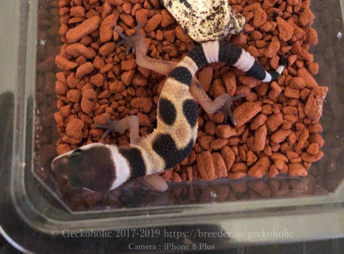 雄親のBlood & Clown Gの祖先がRAPTOR由来の為、small poss het RAPTOR(トレンパーアルビノとエクリプスが隠れヘテロの可能性がある)としています。