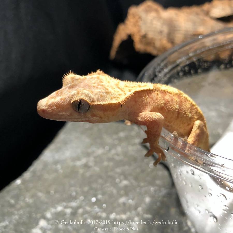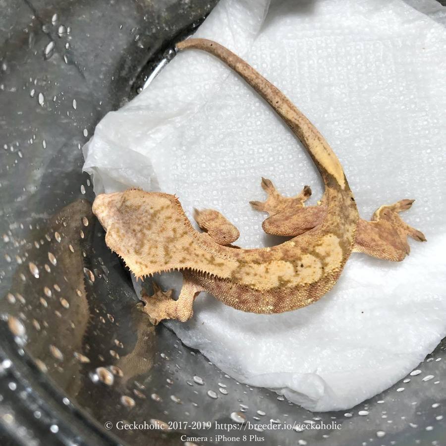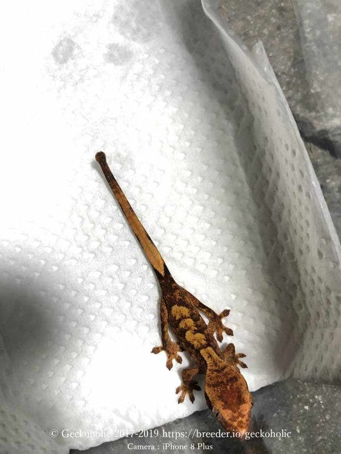 レッドリリーホワイト X ハーレクインの交配によって得られた個体です。Geckoholicで初のリリーホワイトの卵から孵化した個体で、恐らくリリーホワイトが遺伝していると思われますがまだ確定していません。