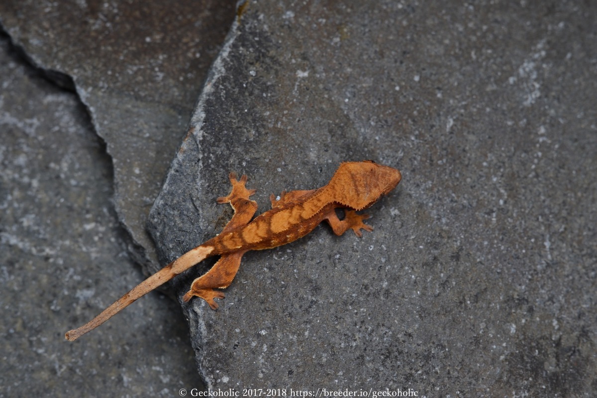 クレステッドゲッコーのモルフ名、特にカラーに関してはブリーダーの主観に依る所が大きいので、この個体は赤茶色が強いので「ディープレッド」とかの方がいいのかな?と思ったのですが一応単純に「レッド」としています。